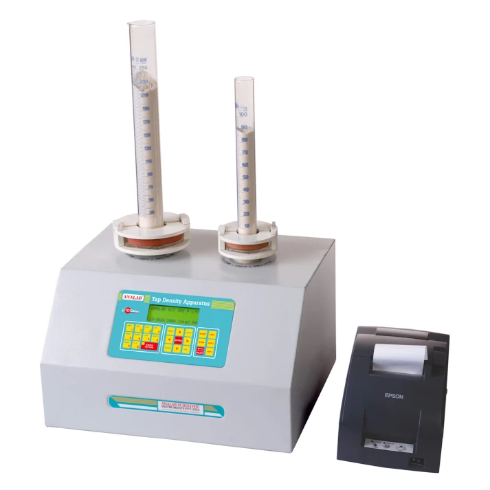 - Analysis Data Storage : More than 750 data can be store in non-Volatile Memory which can print & view analysis data with Batch No., username, sample name, Bath Number/ID Tap/minute, Tap Hight, Tap Count 1, Tap Count 2, Tap Count 3, Tap Count Final, Weight of Sample, Total Number of taps, Initial Volume(Vo), Final Volume (Vf), Tap Density, Bulk Density, Compressibility Index, & Hausner Ratio, instrument serial number, Instrument Make & Model & Signature etc. Secondly, analysis data can be print online without saving analysis data in Instrument.